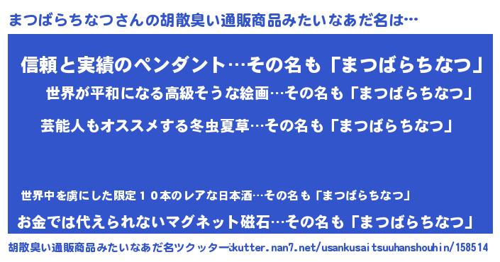 | 意味不明あだ名 | 『自称まつばらちなつ』 |