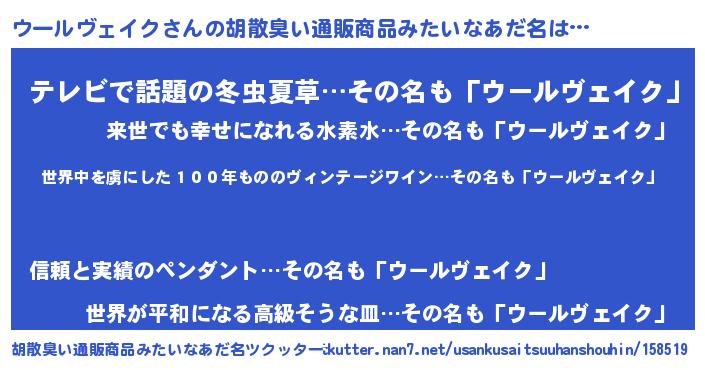 | ヒーロー風カッコイイあだ名 | 『仮面ウーダー』『ネオウールヴェイク』 |
