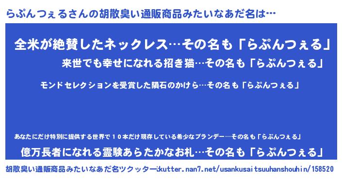 | ヘコむあだ名 | 『らぷっちょ』『らぷにゅー』 |