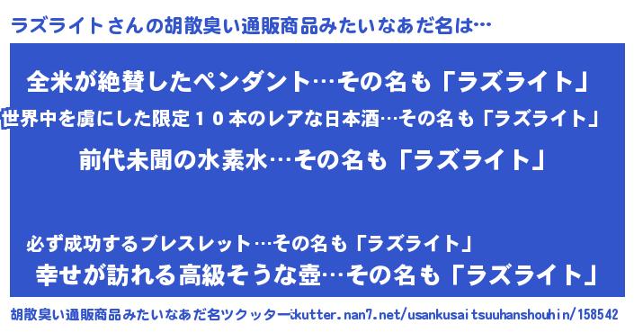 | ヘコむあだ名 | 『ラズライト(震え声)』『ラズぷりん』 |
