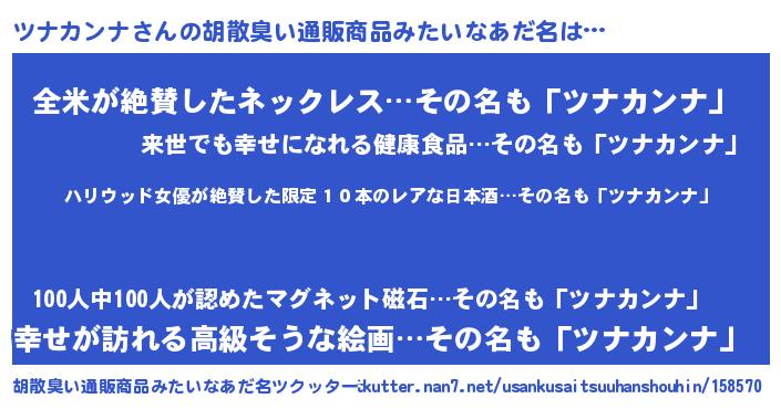 ツナカンナさんの胡散臭い通販商品みたいなあだ名をツクッター!