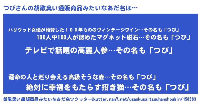 | ヘコむあだ名 | 『つび(笑)』『つくし』『つびお』 |