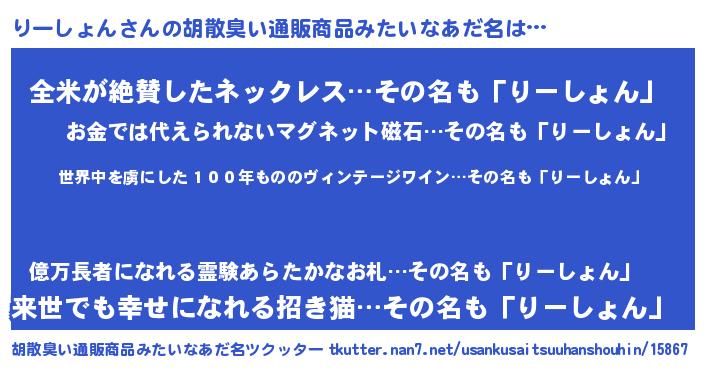 | ヘコむあだ名 | 『りーを』『りーしょん(笑)』 |