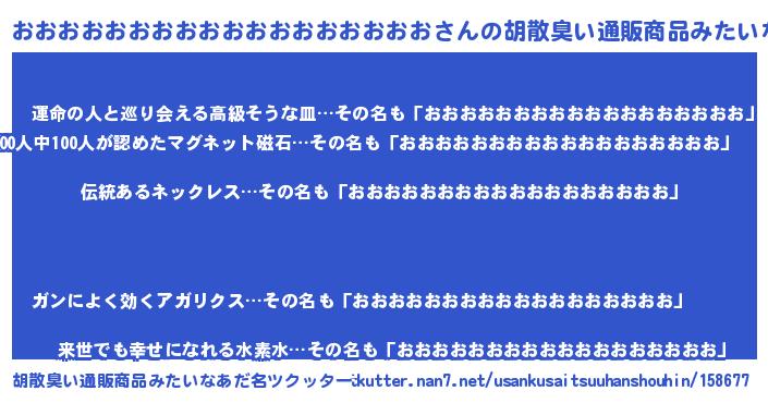 | 男性向けラノベタイトル風あだ名 | 『おおおおおおおおおおおおおおおおおおの嫁は女の子じゃないと思った?』 |