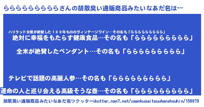 | ヘコむあだ名 | 『ららぷりん』『牛乳』『ららにゅー』 |