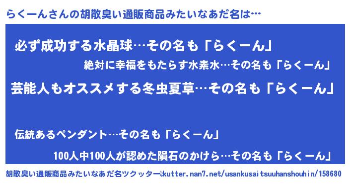 | 意味不明あだ名 | 『自称らくーん』『ペロリンらくーん』 |