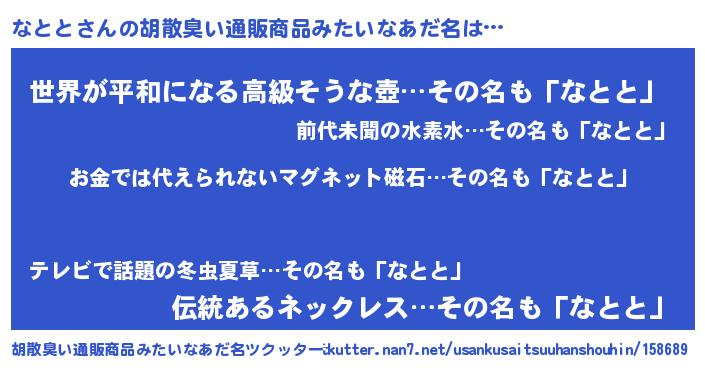 | 意味不明あだ名 | 『眠気覚ましガムなとと味』『自称なとと』 |