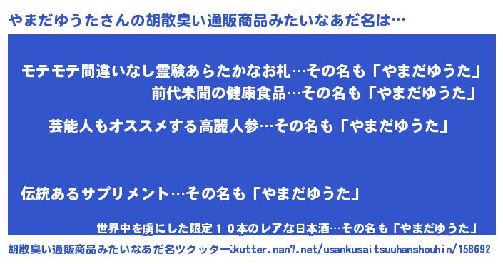 | ヘコむあだ名 | 『やまふぇ~』『やまだゆうた(遠い目)』 |