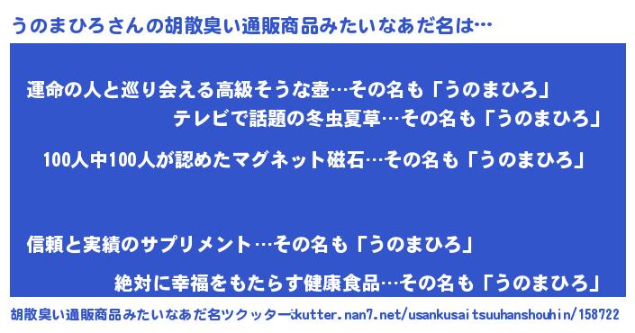| ヘコむあだ名 | 『牛乳』『うのまひろ(笑)』 |