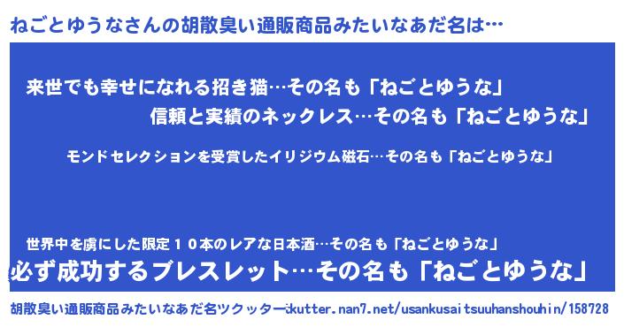 | 伝説のあだ名 | 『救世主となる占い師ねごとゆうな』 |