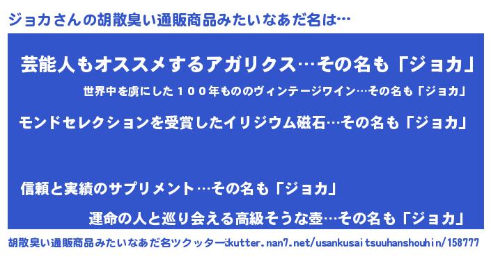 | ヒーロー風カッコイイあだ名 | 『天空の使者ジョカ』『究極戦士ジョカ』 |