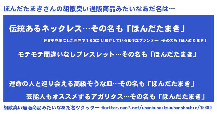 | ヒーロー風カッコイイあだ名 | 『スーパーホンダタマキ』『黄金騎士ホン』 |