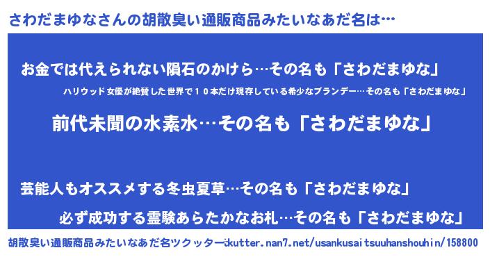 | 意味不明あだ名 | 『永久保存さわだまゆな』 |