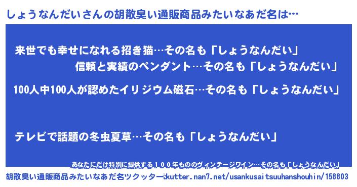 | ヘコむあだ名 | 『しょうなんだい(苦笑)』『しょを』 |