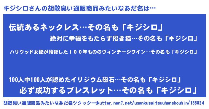 | 意味不明あだ名 | 『住所不定無職キジシロ(13歳)』 |