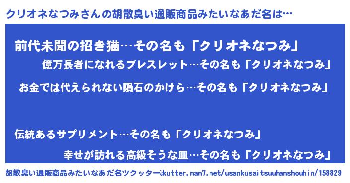 | ヘコむあだ名 | 『クリオネなつみ(遠い目)』『レバニラ』 |