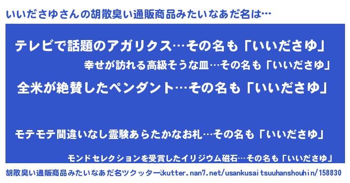 | 男性向けラノベタイトル風あだ名 | 『いいださゆの嫁は女の子じゃないと思った?』 |