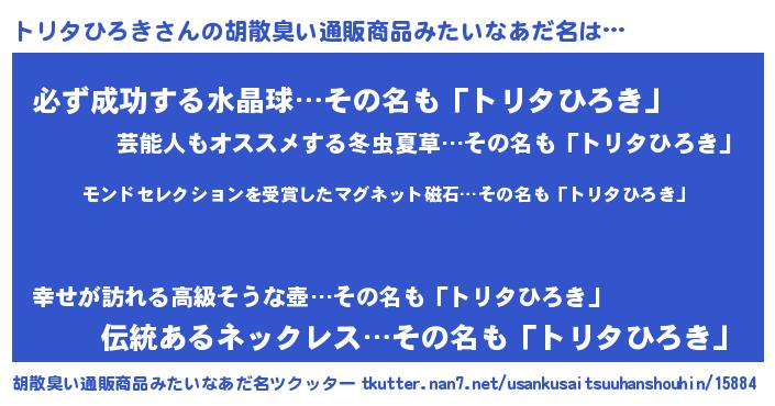 | 肩書あだ名 | 『トリタひろき助教授』 |