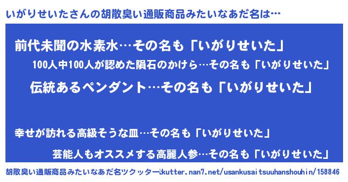 | ヘコむあだ名 | 『いがぷりん』『いがりせいた(遠い目)』 |