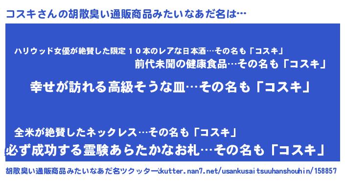 | 恥ずかしいあだ名 | 『コスっちょ』『プリティーコスキ』 |