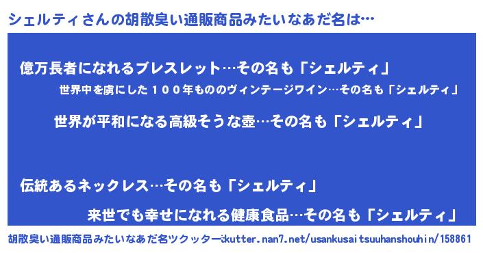 | 恥ずかしいあだ名 | 『シェっちょ』『プリティーシェルティ』 |