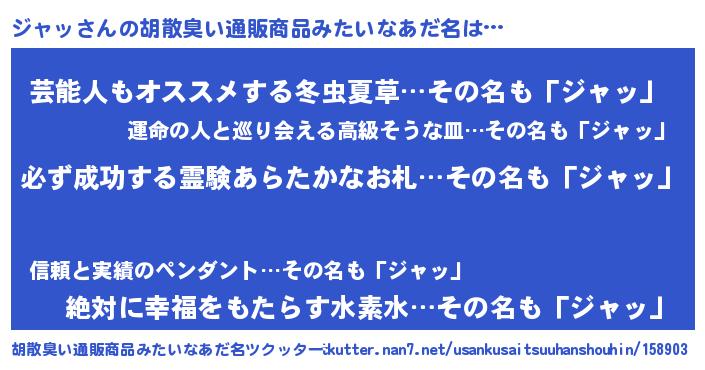 | ヒーロー風カッコイイあだ名 | 『スーパージャッ』『超時空戦士ジャッ』 |