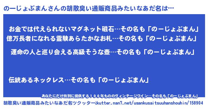 | 意味不明あだ名 | 『のーじょぶまんフォーエバー』 |