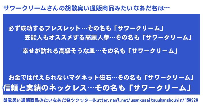 | 女子向けラノベタイトル風あだ名 | 『サワークリームの雑貨屋さん』 |