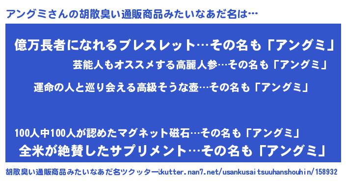 | 意味不明あだ名 | 『アングミフォーエバー』『自称アングミ』 |