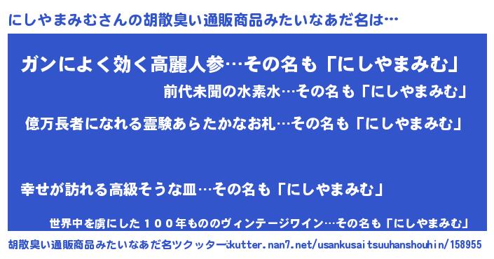 | 肩書あだ名 | 『にしやまみむ御曹司』 |