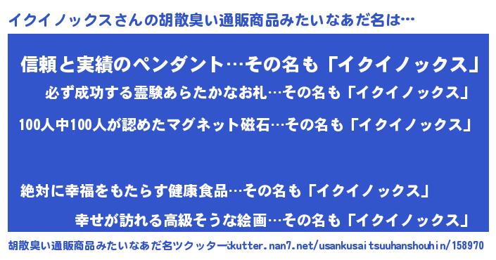 | 男性向けラノベタイトル風あだ名 | 『イクイノックススレイヤー』 |