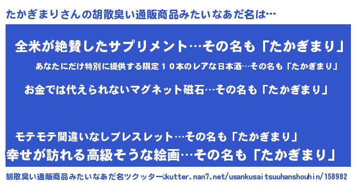 | ヒーロー風カッコイイあだ名 | 『愛の使者たかぎまり』『炎刃騎士タカ』 |