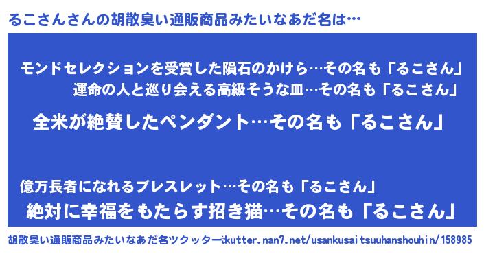 | ヘコむあだ名 | 『るこっちょ』『るこさん(遠い目)』 |