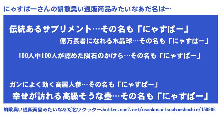 | 男性向けラノベタイトル風あだ名 | 『ニャスパースレイヤー』 |