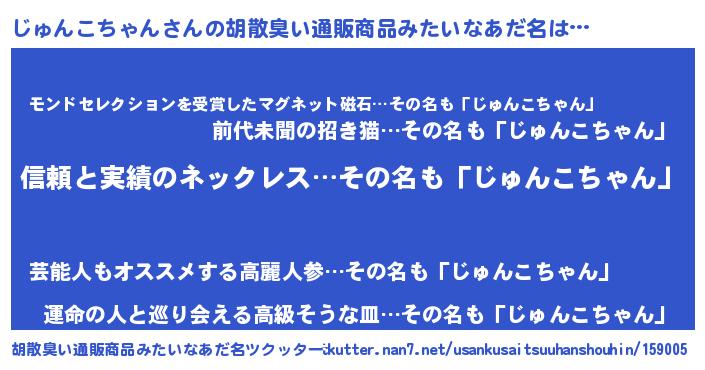 | 男性向けラノベタイトル風あだ名 | 『ジュンコチャンスレイヤー』 |