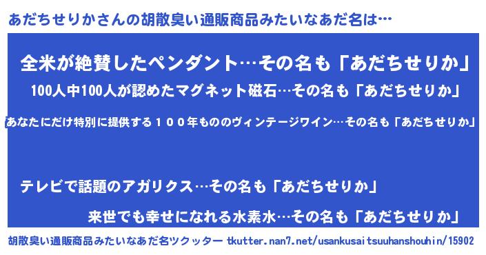 | ヘコむあだ名 | 『あだを』『あだちせりか(遠い目)』 |