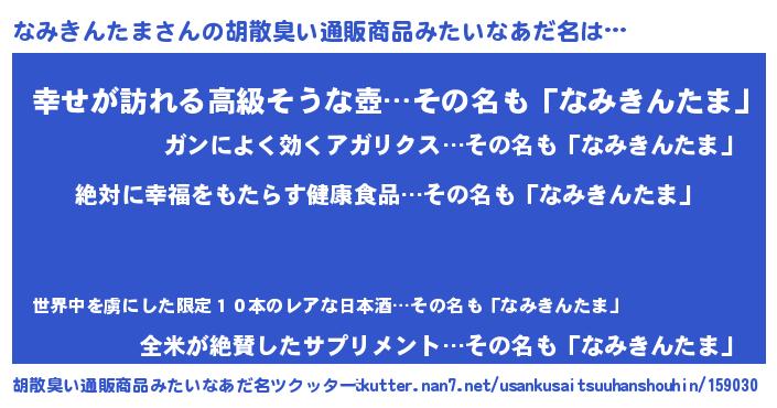 | 意味不明あだ名 | 『永久保存なみきんたま』 |