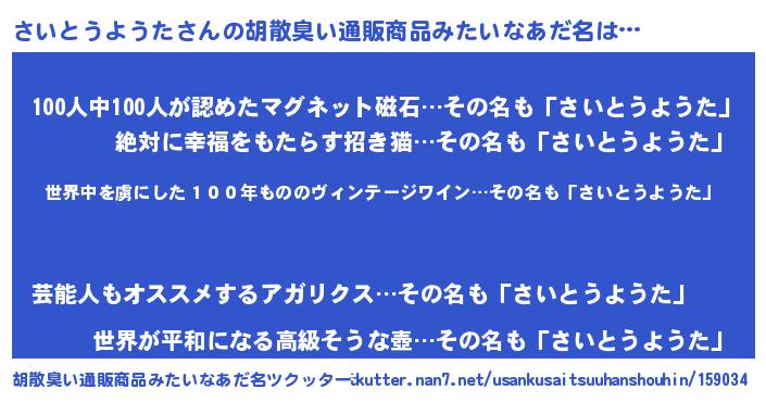| 男性向けラノベタイトル風あだ名 | 『この素晴らしい世界にさいとうようたを!』 |