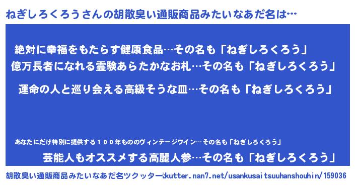 | ヒーロー風カッコイイあだ名 | 『ウルトラねぎしろくろうマン』 |