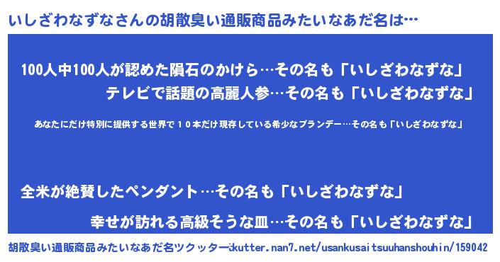| 意味不明あだ名 | 『住所不定無職いしざわなずな(86歳)』 |