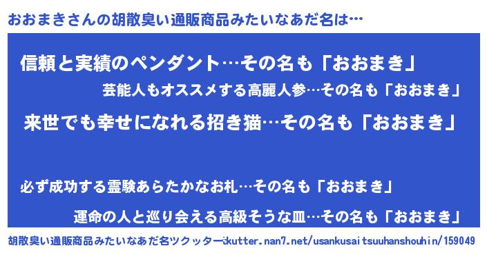 | 男性向けラノベタイトル風あだ名 | 『おおまきという概念が存在しない退屈な世界 』 |