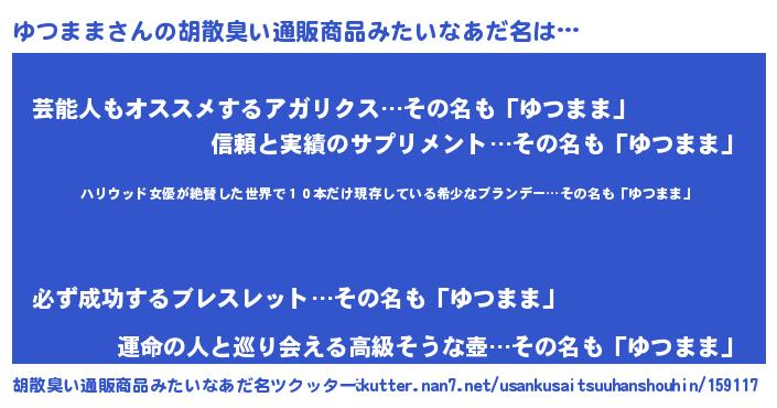 | 恥ずかしいあだ名 | 『ユツママデラックス』『ゆつっちょ』 |