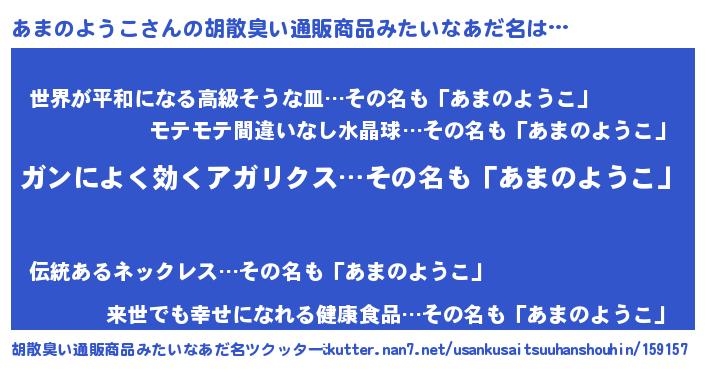 | 女子向けラノベタイトル風あだ名 | 『あまのようこなんてお断りですっ。』 |