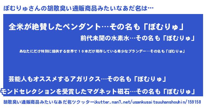 | 意味不明あだ名 | 『住所不定無職ぼむりゅ(81歳)』 |