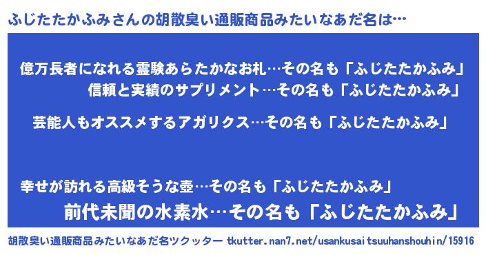 | 意味不明あだ名 | 『自称ふじたたかふみ』 |