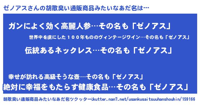 | 意味不明あだ名 | 『とにかく怪しいゼノアス』 |