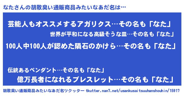 | 女子向けラノベタイトル風あだ名 | 『なた夫妻のなれそめ』『なた伯爵の花嫁』 |