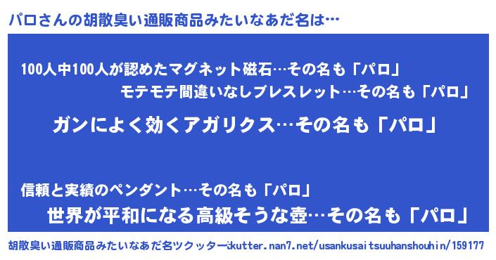 | ヒーロー風カッコイイあだ名 | 『ウルトラ戦士パロ』『正義の使者パロ』 |