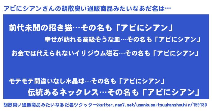 | ヘコむあだ名 | 『アビにシアン(笑)』『アビ太郎』 |