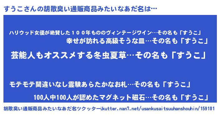 | 欧米人風あだ名 | 『ケンブリッジすうこ』『ダニエルすうこ』 |